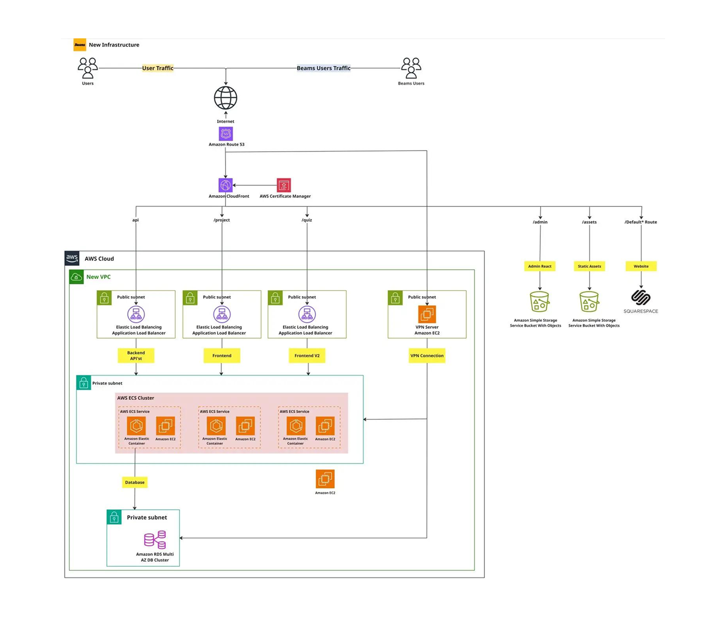 - Scalability and Reliability: ECS with Auto Scaling and RDS Multi-AZ allowed Beams to scale dynamically without compromising uptime or performance, ensuring high availability even during peak traffic periods.