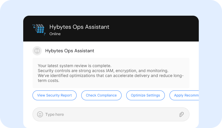 Hybytes maintains long-term relationships through ongoing support, optimization, and continuous improvement. We help teams refine their cloud architecture, reduce operational overhead, optimize costs, strengthen DevOps pipelines, and improve performance across all layers of the system.